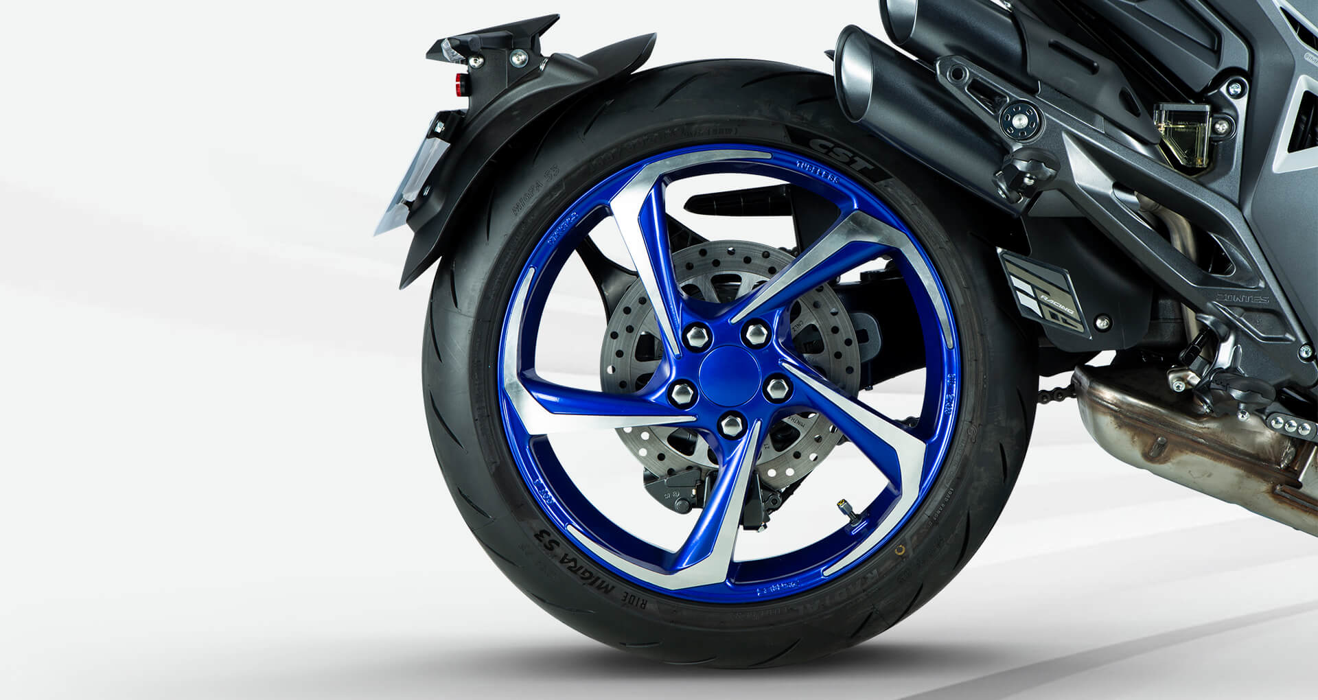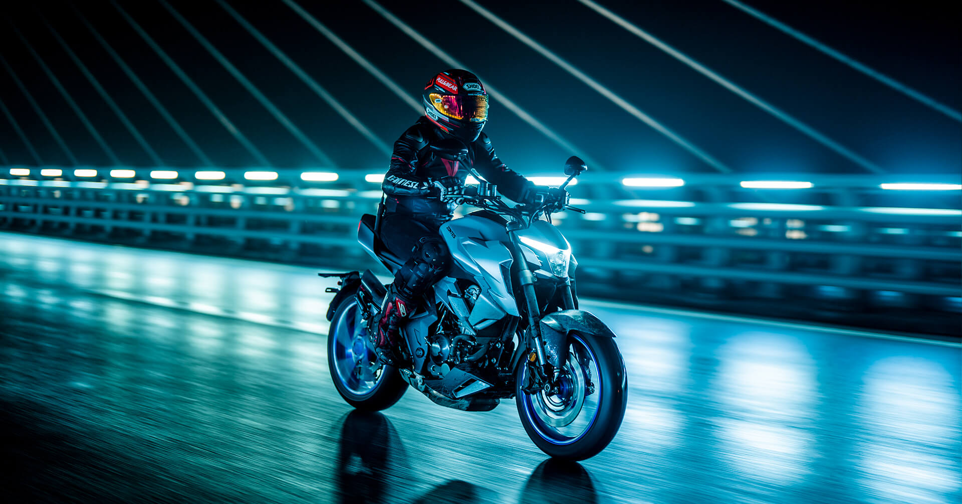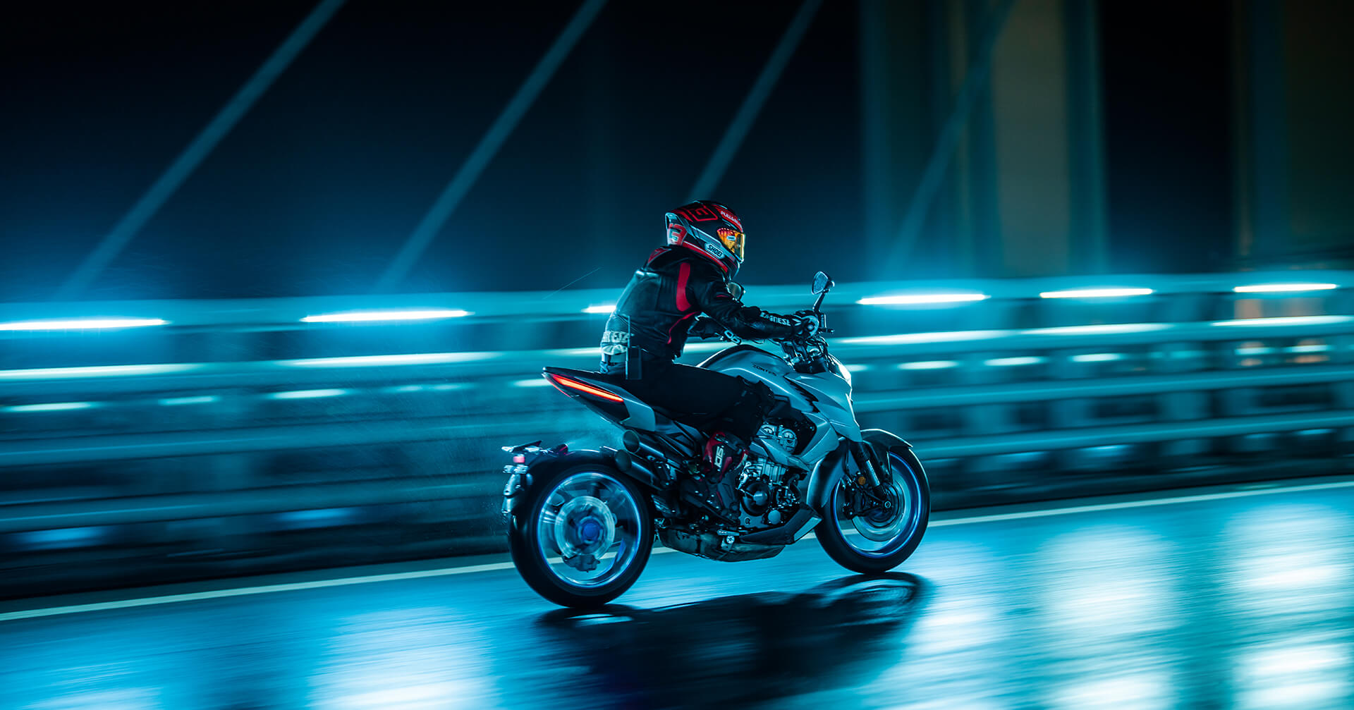 Колёса и подвеска. На мотоцикл установлены колёса с алюминиевыми дисками диаметром 17 дюймов. Подвеска спереди представлена телескопической вилкой, а сзади используется моноамортизатор.