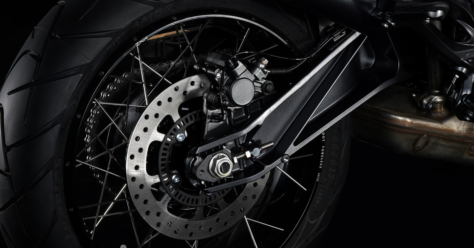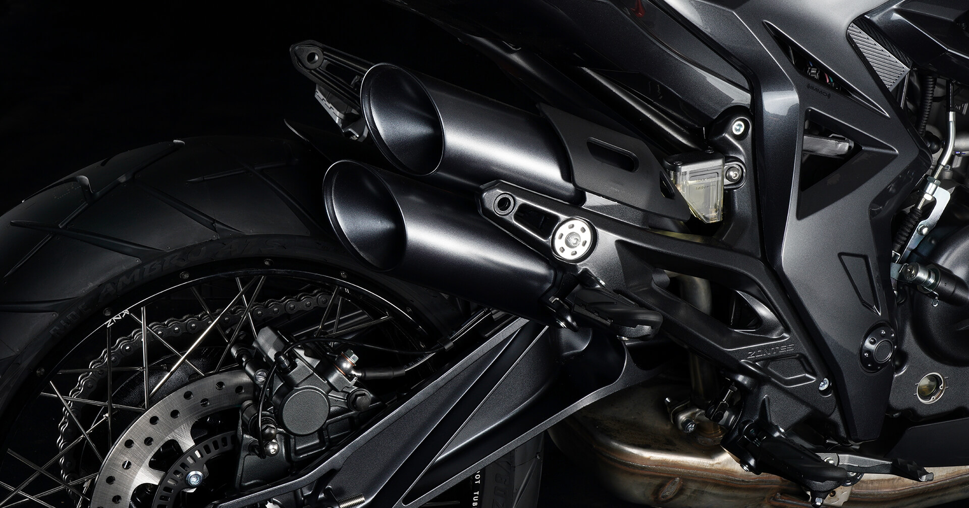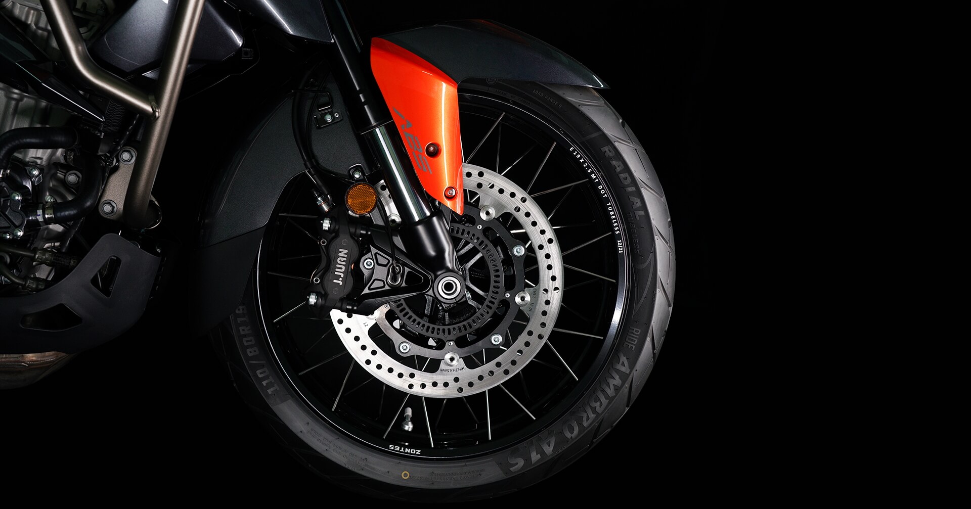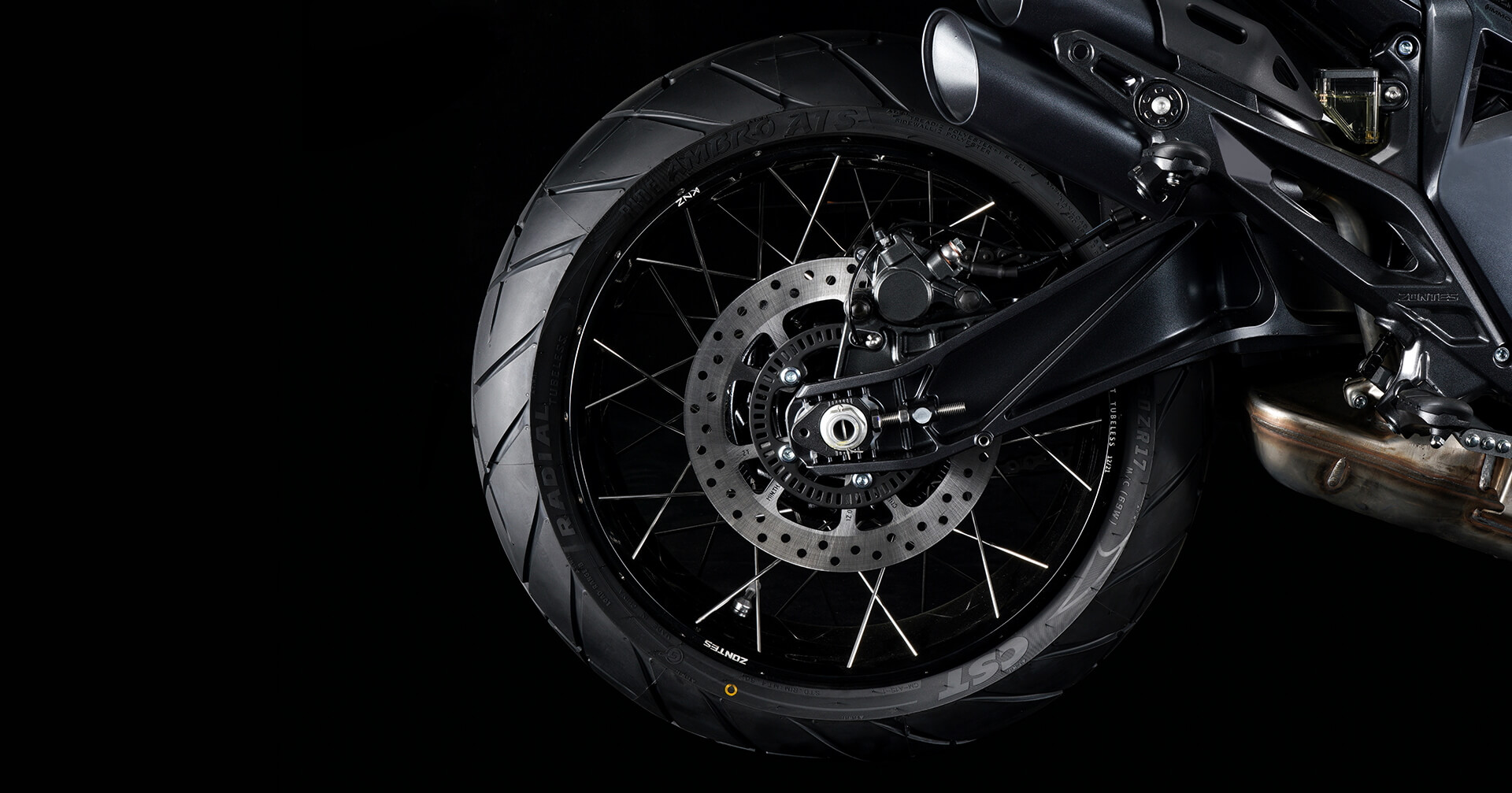 Колёса и подвеска. Колёса имеют диаметр 19 дюймов спереди и 17 дюймов сзади. Для подвески спереди используется телескопическая вилка, а сзади установлен моноамортизатор.