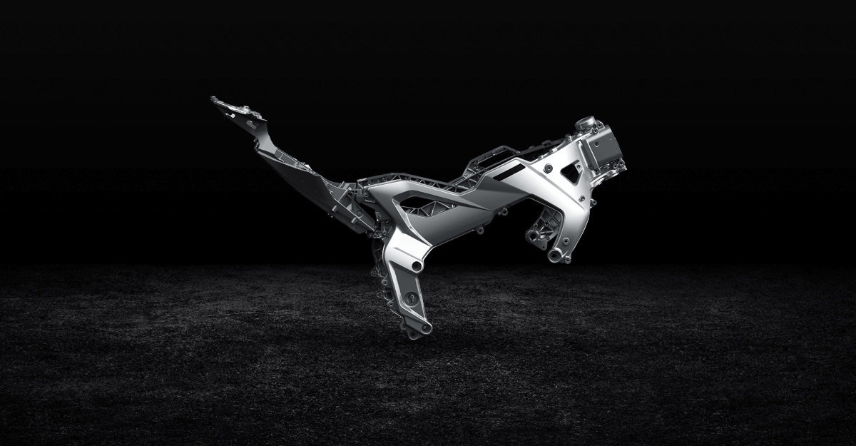 Конструкция разработана для поездок на высоких скоростях. Она обеспечивает высокую прижимную силу, эффективно рассекает встречный поток ветра и устойчива к высоким нагрузкам. Алюминиевая рама имеет вес 12 кг и устойчивость на разрыв 20 000 Н (2 тонны). Подрамник весит 2,5 кг и устойчив к воздействию на разрыв 15 000 H (1,5 тонны). Нижнее расположение глушителя снижает центр тяжести и повышает устойчивость. Габариты мотоцикла 2065x745x1145 мм, колёсная база 1450 мм, высота по седлу 795 мм, вес 196 кг. Топливный бак имеет объём 16 литров. Запирается на электронный замок, открывается через кнопку на руле.