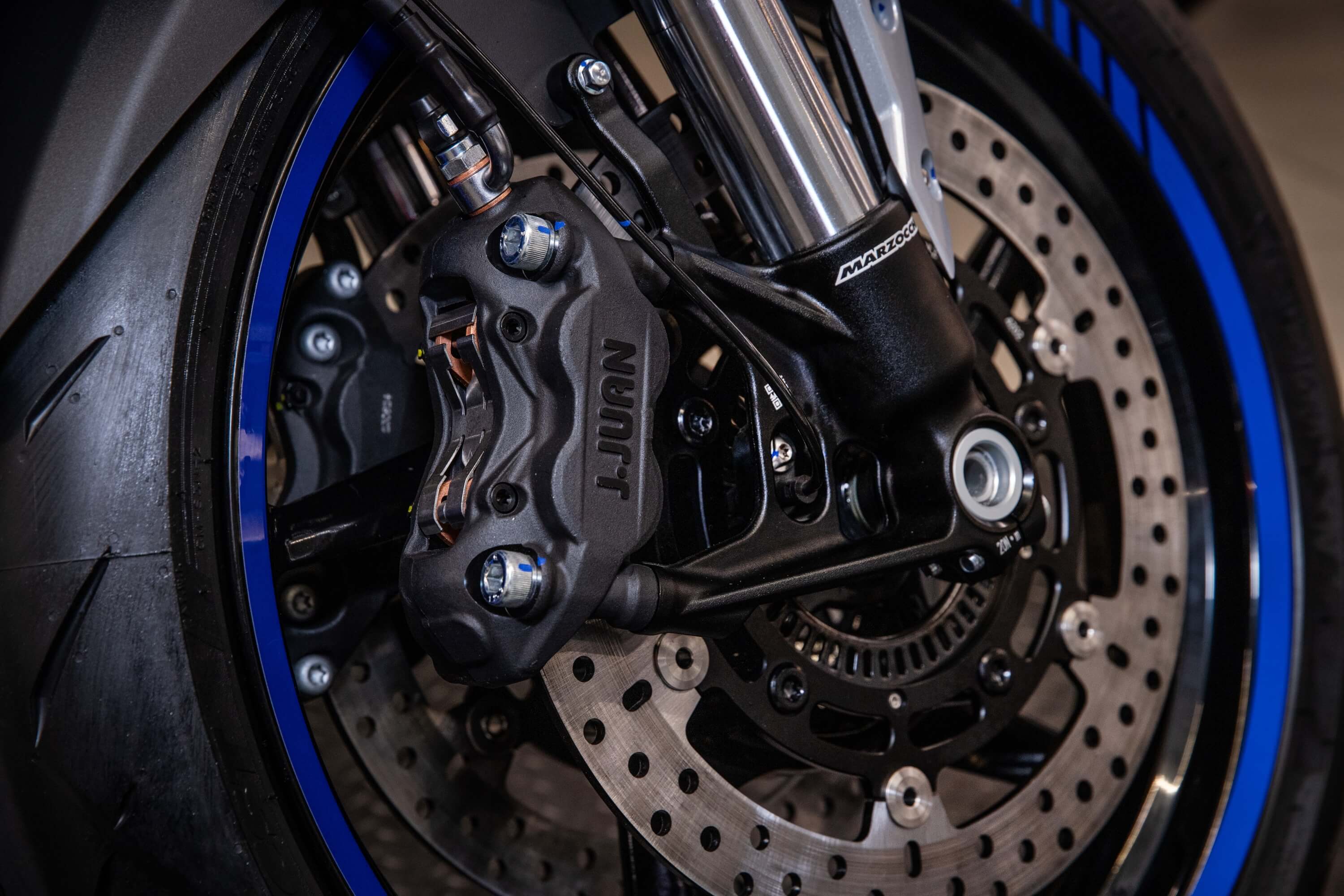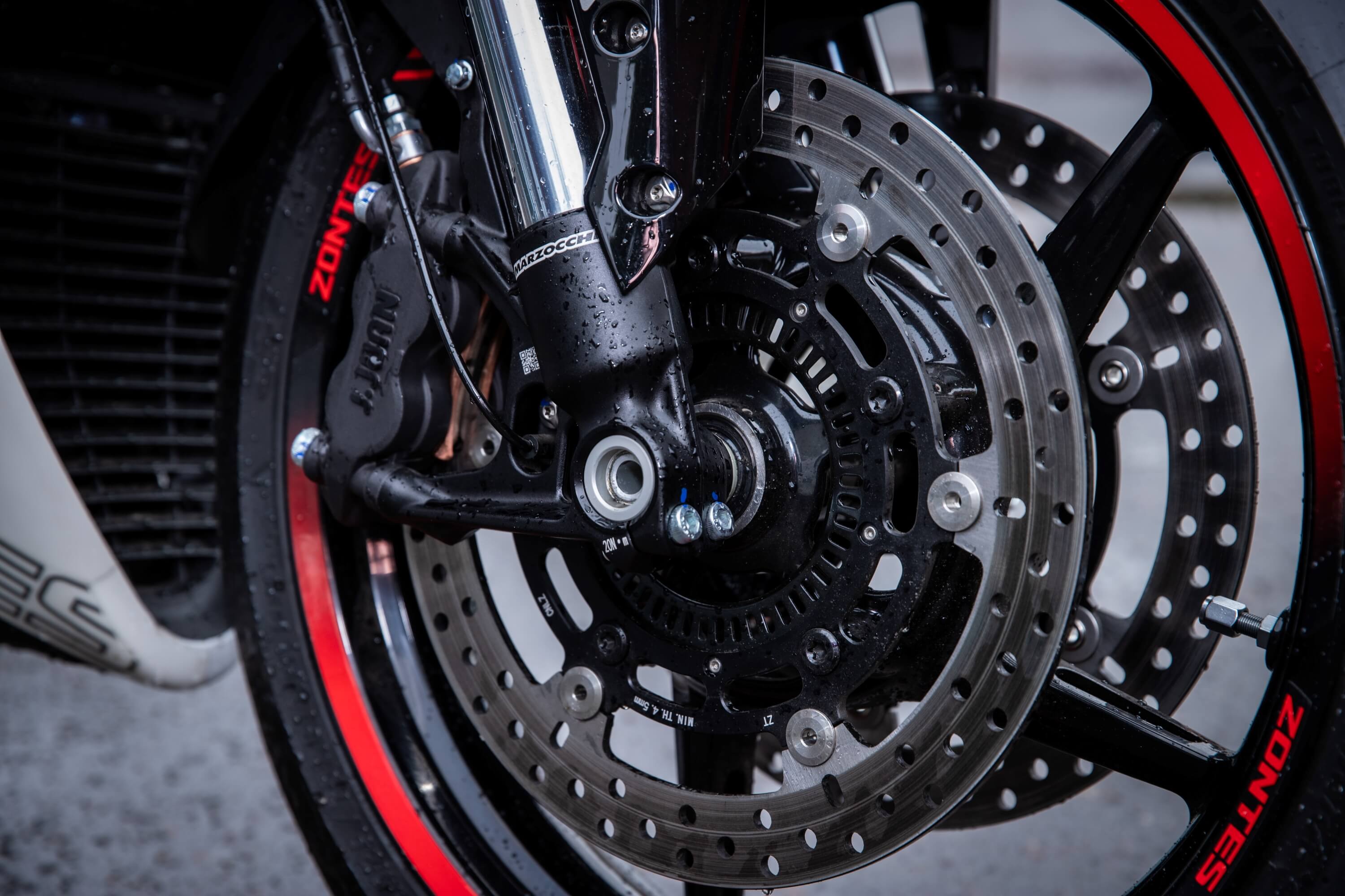 Подвеска MARZOCCHI оснащена регулировками. Спереди представлена телескопической вилкой перевёрнутого типа, а сзади используется многорычажная подвеска, улучшающая устойчивость при высоких скоростях.