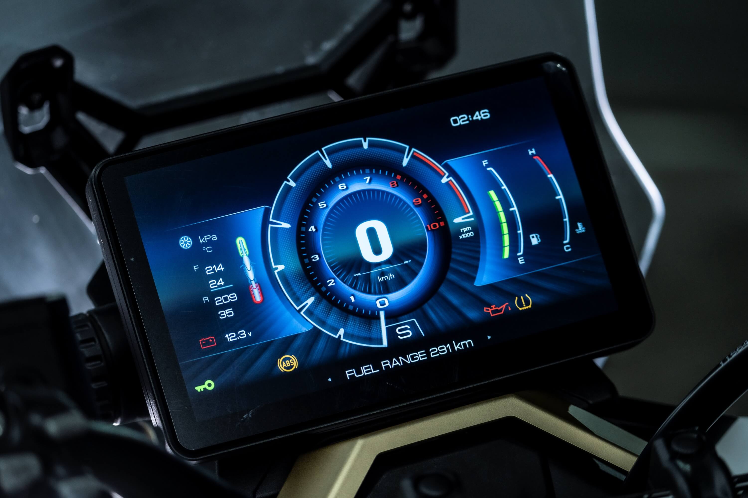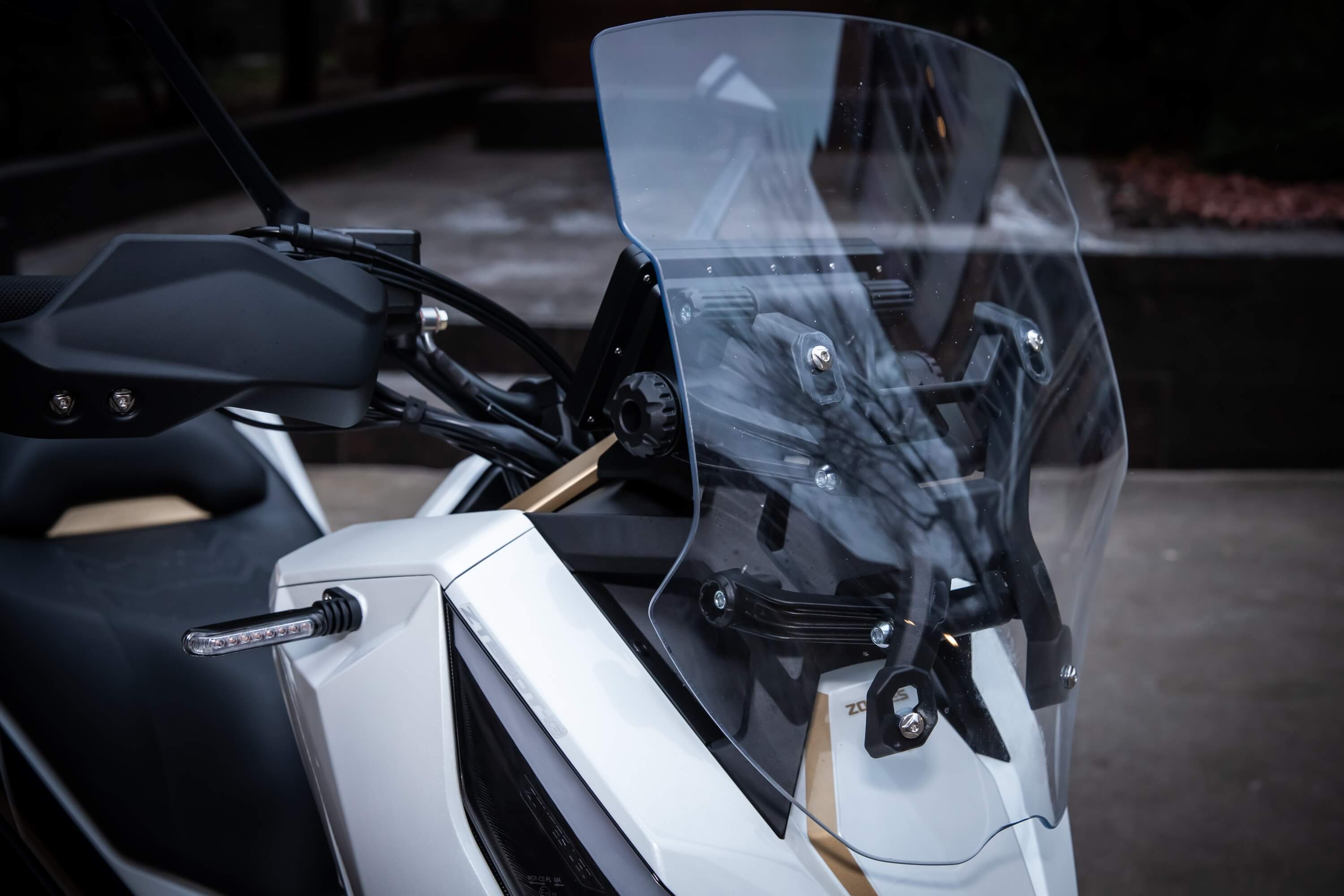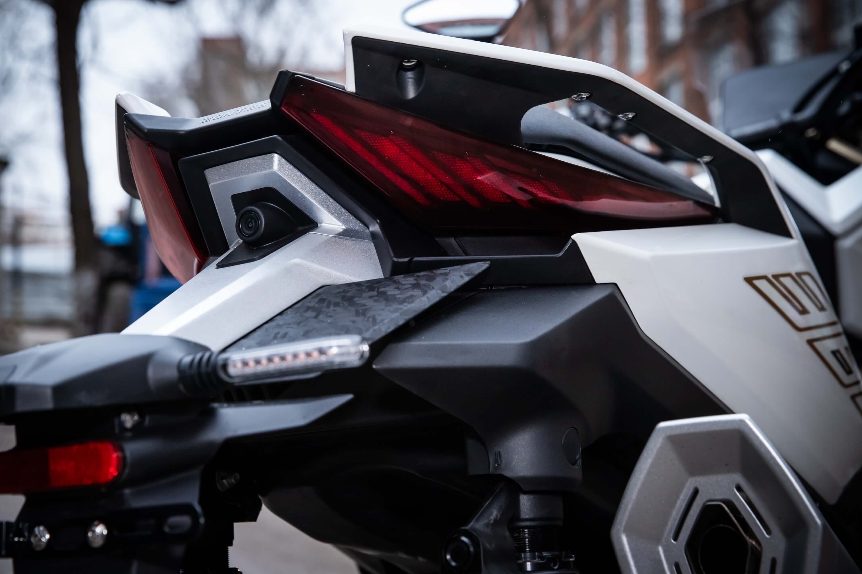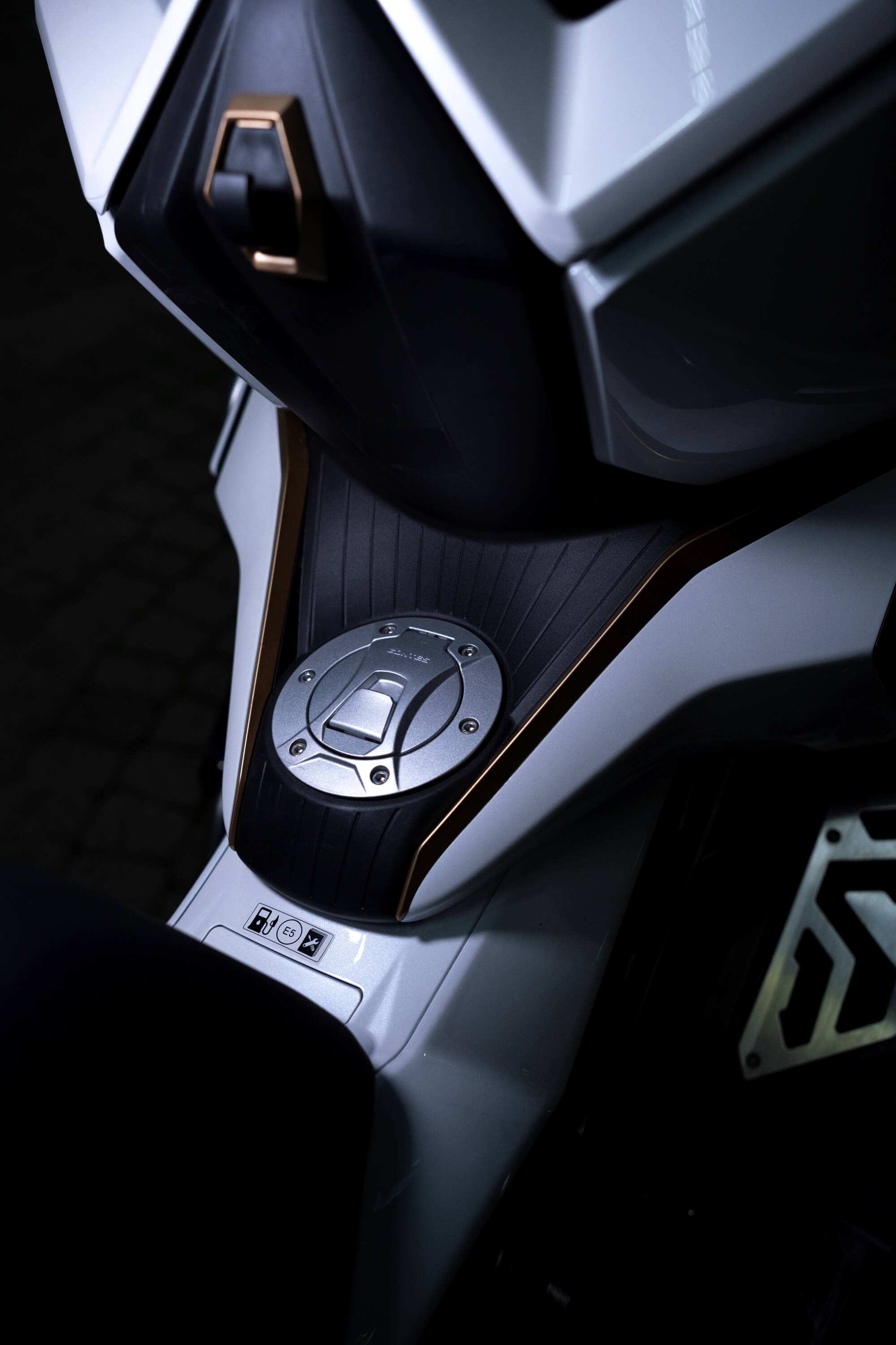 Комплектация. Скутер оснащён противобуксовочной системой TCS System и датчиками давления в шинах. Для фар используется яркая LED-оптика, а приборная панель оснащена цифровым дисплеем. Можно подключить и заряжать устройства через 2 USB-порта.