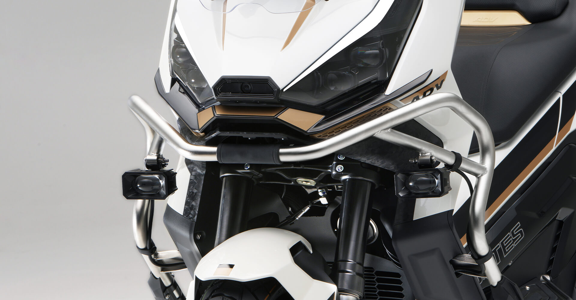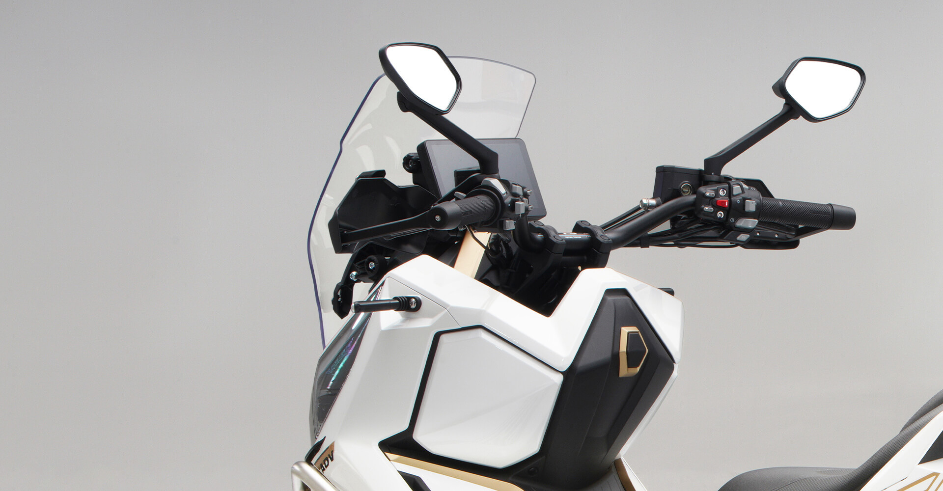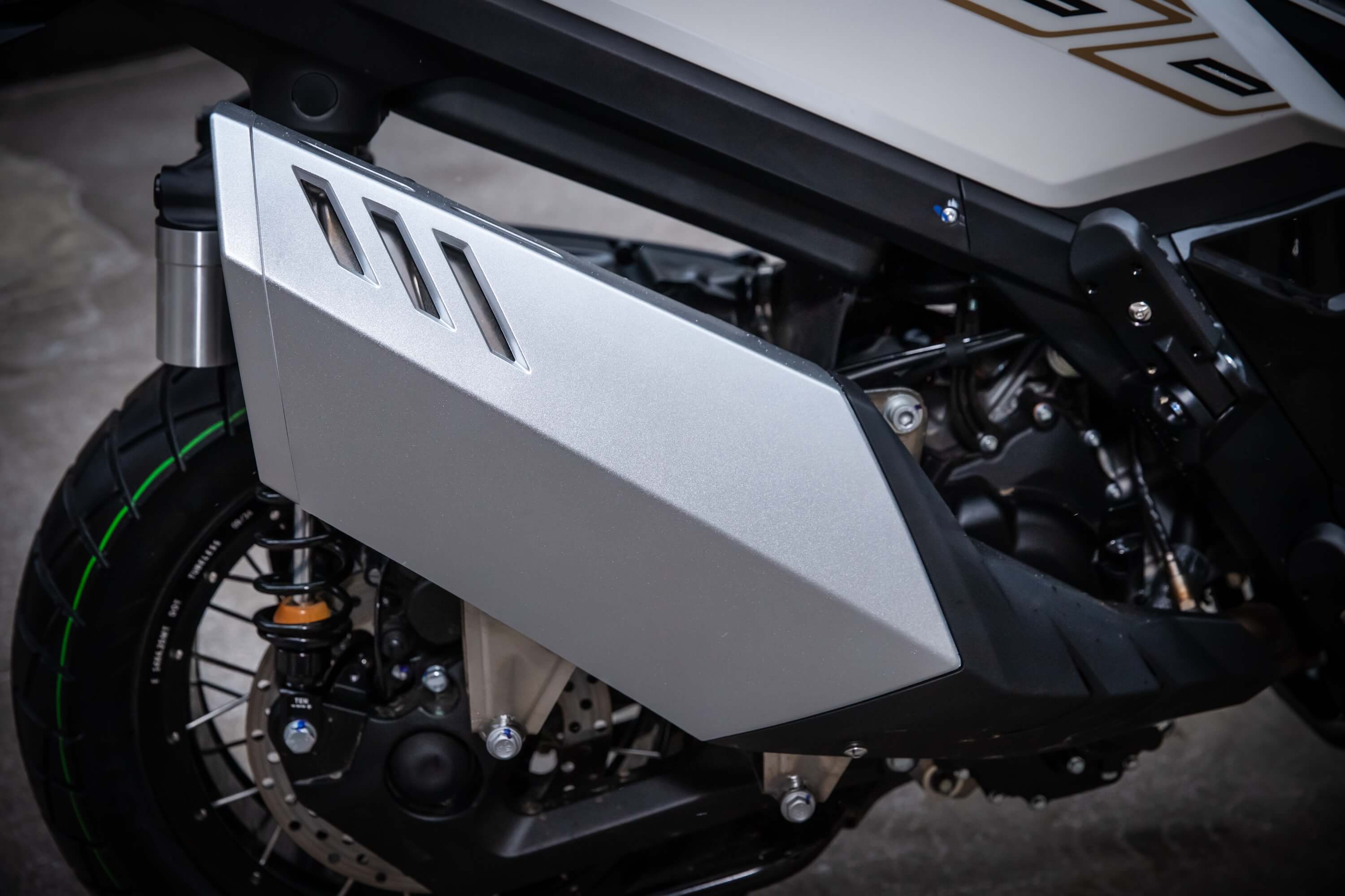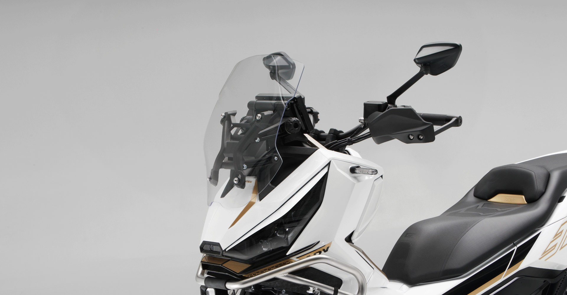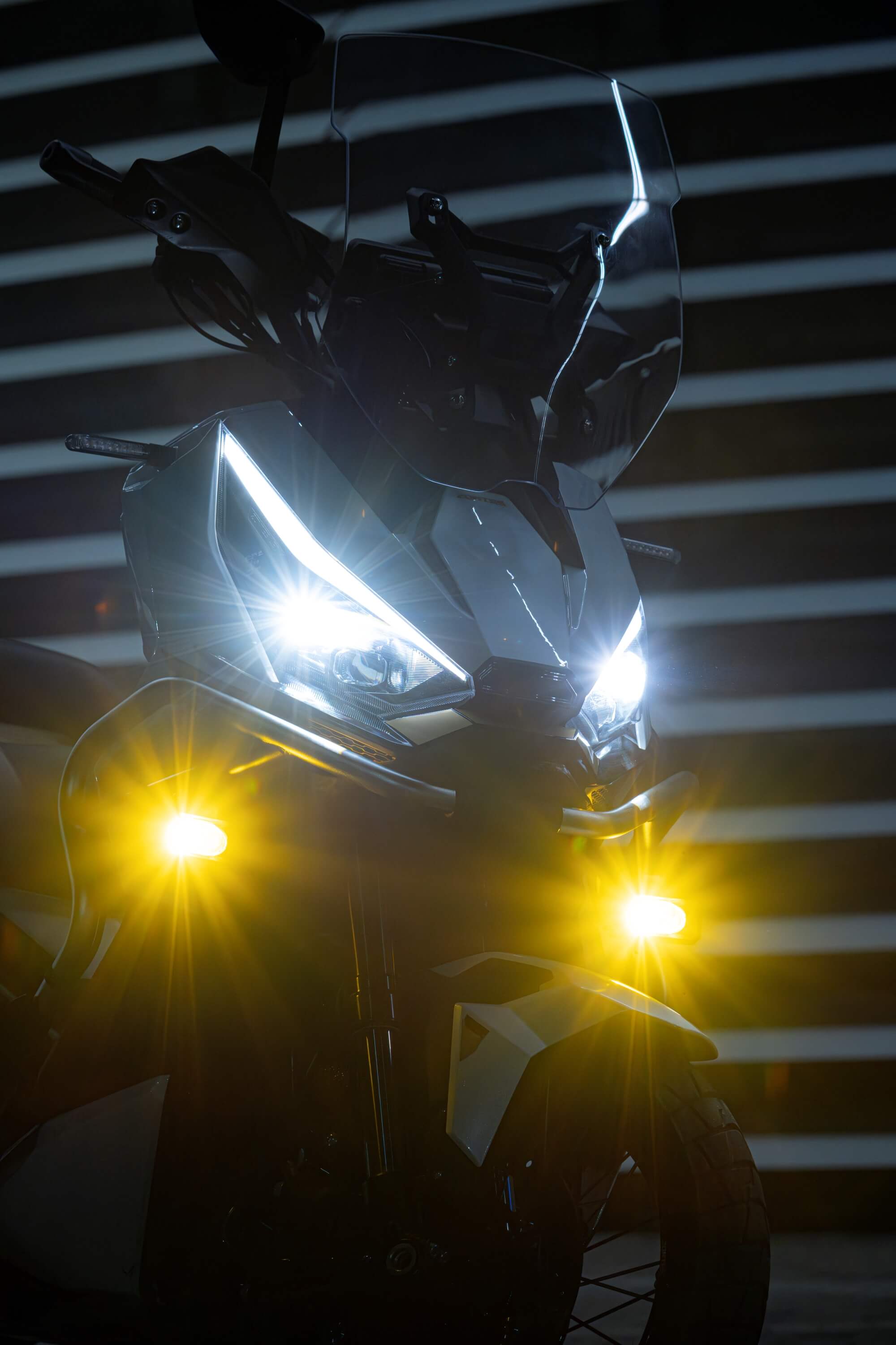 Комплектация. Скутер оснащён противобуксовочной системой TCS System и датчиками давления в шинах. Для фар используется яркая LED-оптика, а приборная панель оснащена цифровым дисплеем. Можно подключить и заряжать устройства через 2 USB-порта.