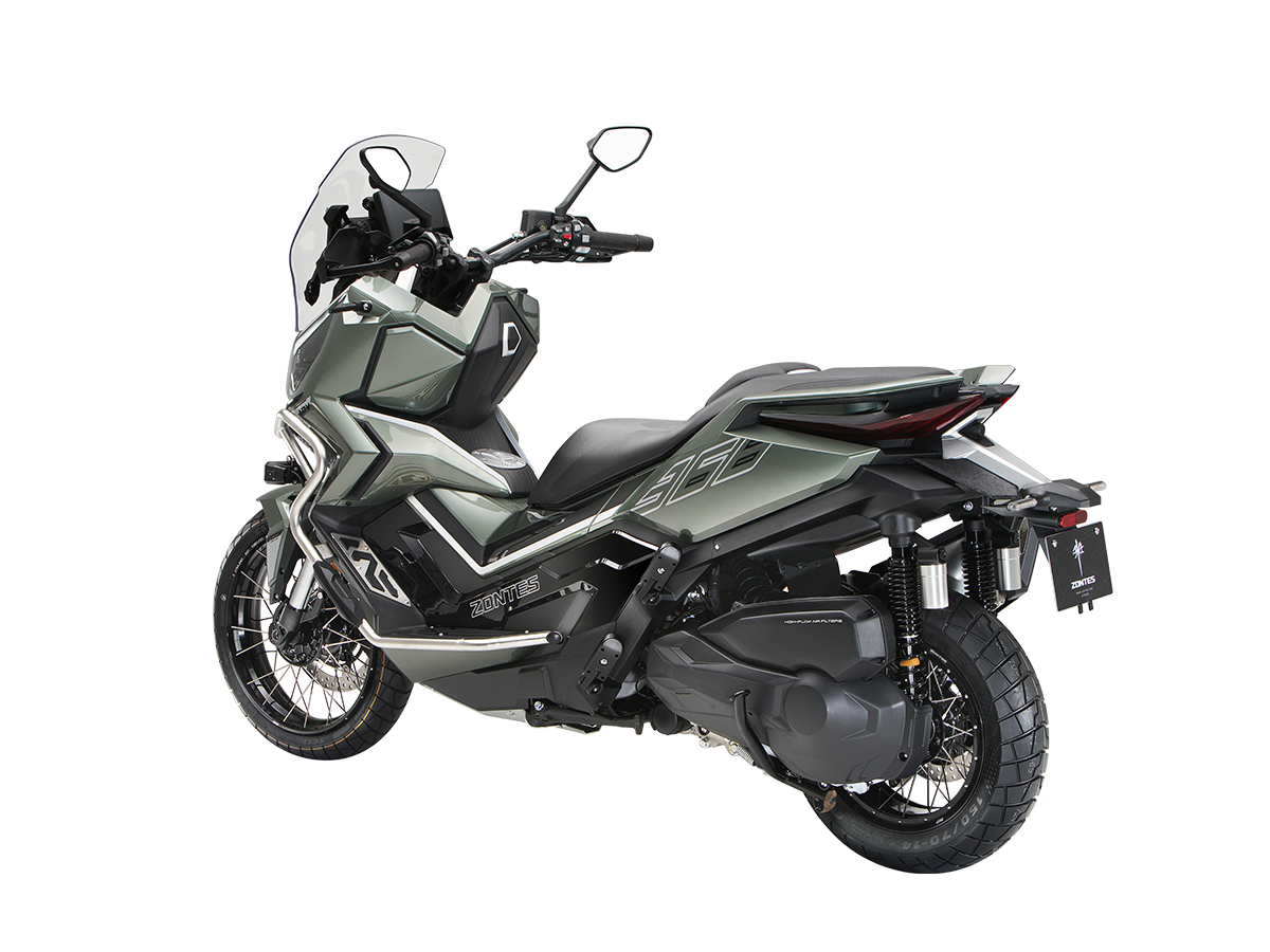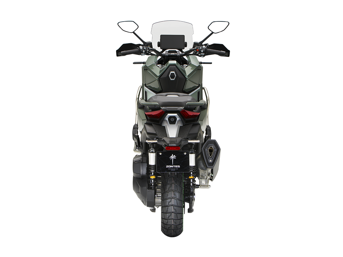 Скутер ZONTES ZT368-G – максискутер двойного назначения, который подойдёт как для города, так и внедорожных ландшафтов. Регулируемая подвеска готова адаптироваться к любым условиям, а перевёрнутая телескопическая вилка спереди обеспечивает высокую устойчивость и управляемость скутера даже на сложных рельефах.
