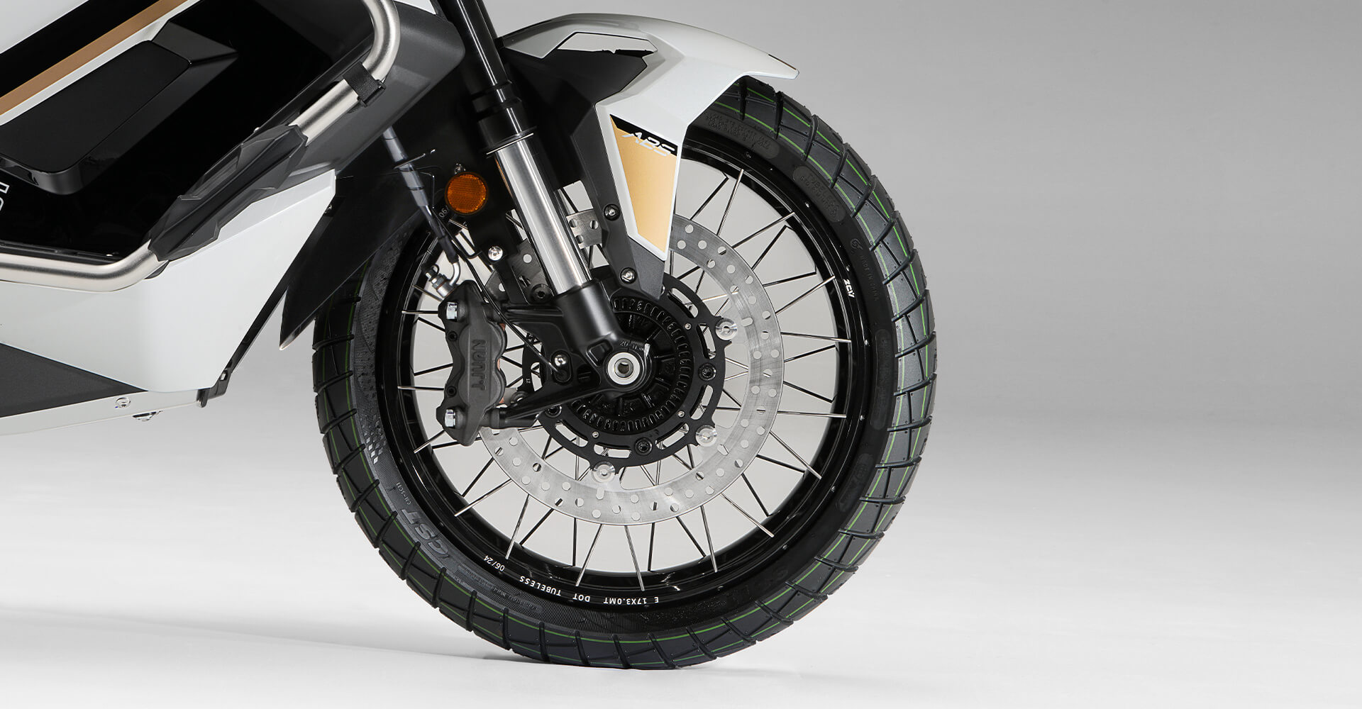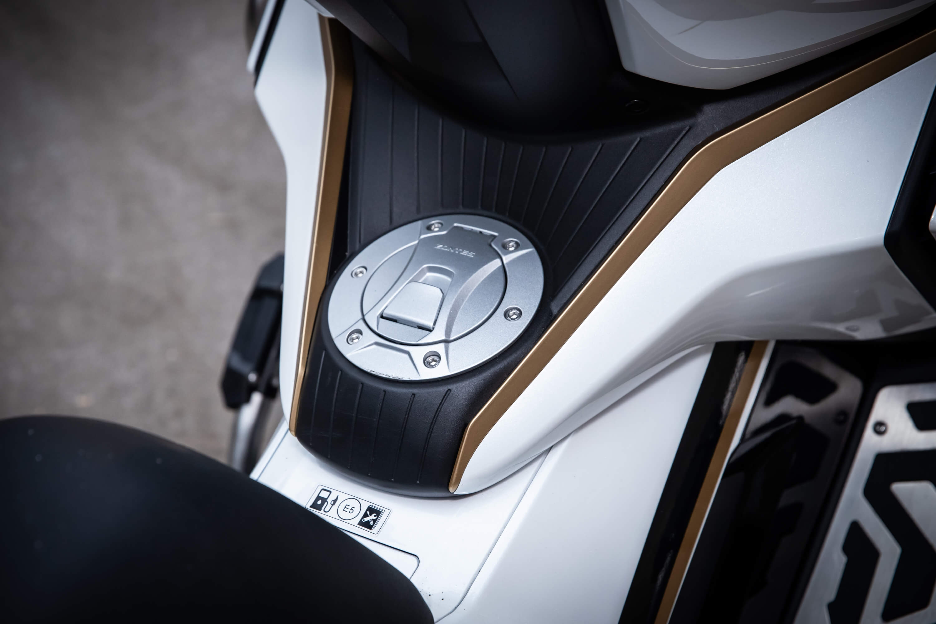 Ходовая часть. На скутер установлены колёса диаметром 17 дюймов спереди и 14 дюймов сзади. Для подвески используется телескопическая вилка перевёрнутого типа спереди и 2 гидравлических амортизатора сзади. Оба компонента регулируются. Для торможения используются дисковые гидравлические тормоза, произведённые компанией J.JUAN (BREMBO), а также 2-канальная ABS-система.